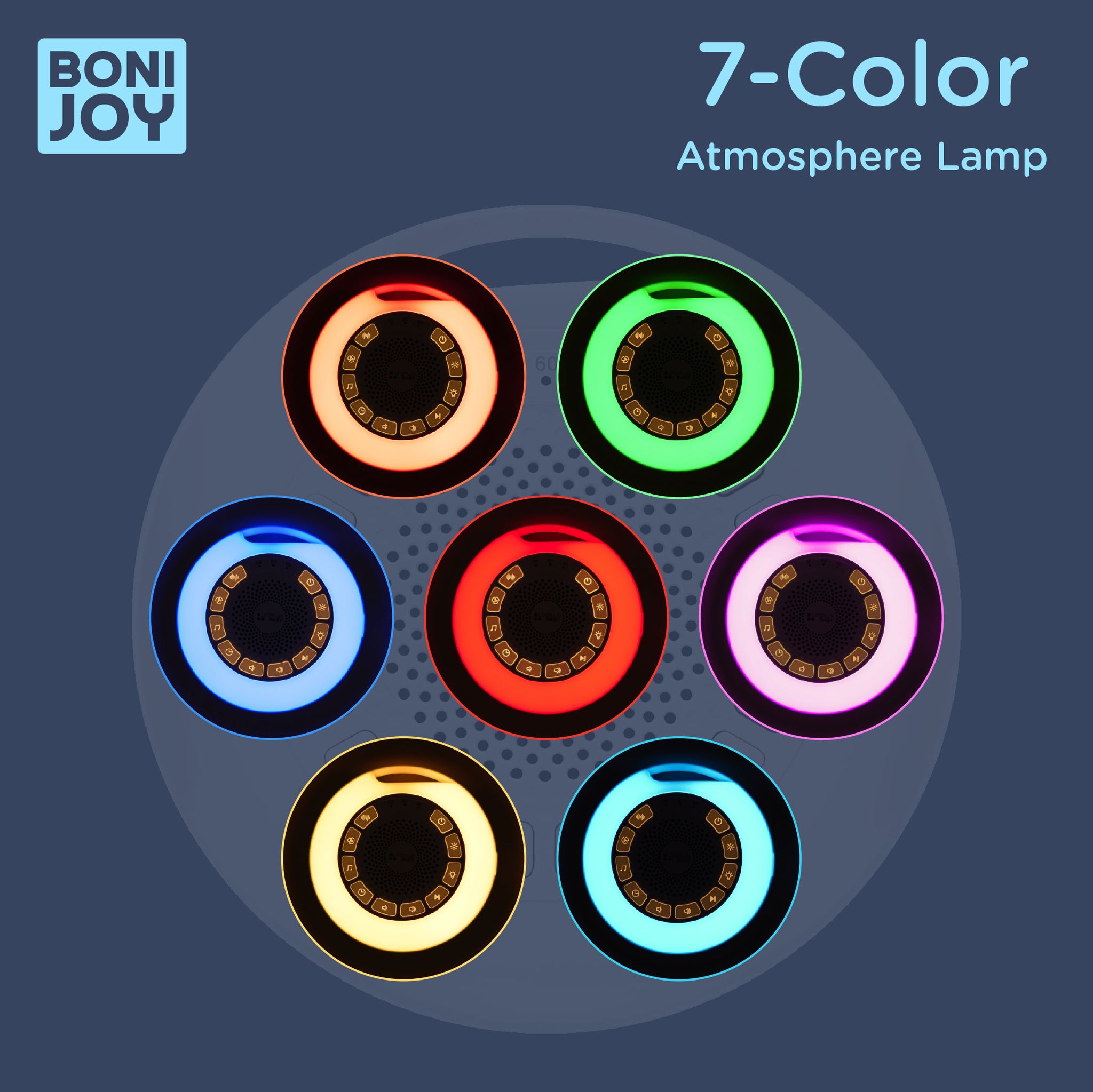 - 7 colors ambient light, press the button for 2 seconds to turn off the ambient light.